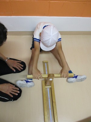 長座体前屈は、柔軟性を調べるために行いました。