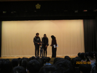 今日の2・3校時に「エバリー」さんが来校してくださり、1・2年生が音楽鑑賞をしました。