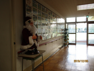 6年生は、体育の授業がありました。 ポールに乗せたボールを太陽目指してバットで打ちました。